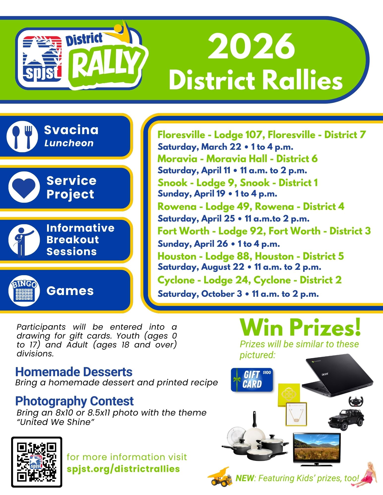 - Elect District 7 representative for the SPJST Senior Living Board of Directors (3-year term).